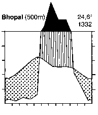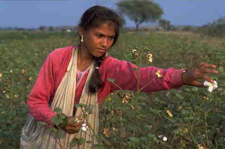 Der durch den Monsun bedingte Wechsel der Jahresniederschläge bietet ideale Bedingungen für den Baumwollanbau. Ein Großteil der Maikaal-Felder kommt ohne zusätzliche Bewässerung aus. Die Baumwollpflanzen, die rund 200 Tage von der Aussaat bis zur Reife benötigen, werden zu Beginn des feuchten Sommermonsuns (Juni/Juli) eingepflanzt (vgl. Klimadiagramm Bhopal). In dieser frühen Wachstumsphase benötigen die Pflanzen ausreichend Wasser. In der Zeit kurz vor der Ernte (Dezember/Januar) benötigt die Baumwollpflanze ein trockenes Klima. Diese Anbauperiode fällt in die Zeit des trockenen Wintermonsuns. |